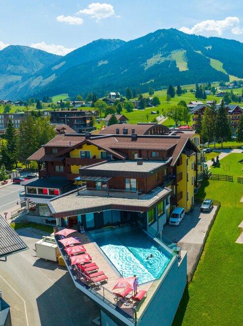 Eingebettet in die malerische Berglandschaft der Schladminger Tauern, liegt das Hotel an einer Toplage direkt an den Skipisten und Wander- & Bikewegen. Den Wintersportlern, Wanderfreunden und Mountainbikern erschliessen sich so in wenigen Minuten die Schladminger Berghöhen und ein herrliches Bergpanorama.