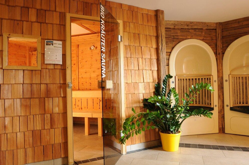 Erholung für Geist und Körper erfahren Sie in unserem Sky SPA Adults Only (mit Ruheraum mit Terrasse, Finnische Sauna, Biokräutersauna, Dampfbad, Physiotherm Infrarotkabine,Kraxnofen) sowie Infinity Pool & Textil Sauna (Family SPA) und Fitnessraum.