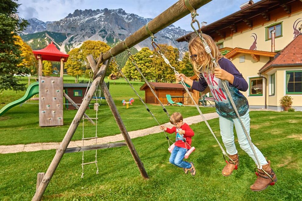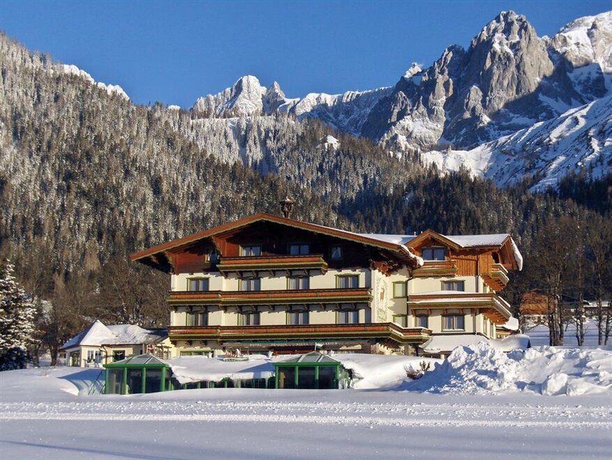 Unsere familiär geführte ****Hotel-Pension liegt in 1200 m Seehöhe am Fuße des Dachsteinmassivs in der Ramsau, in einer besonders schönen, sonnigen, ruhigen und doch zentralen Lage. (direkt an den Wanderwegen, Loipen, Skiliften gelegen!) Tauchen Sie in unser attraktives Felsenhallenbad (5 x 11 m) mit herrlichem Panoramablick auf die Schladminger Tauern ein. Ausgestattet mit Gegenstromanlage, Whirlbank, Massagedüsen, Lichtspielen und Sonnenliegefläche für drinnen und draußen. Aroma-Dampfbad, Finnische Sauna, Infrarot-Wärmekabine, Solarium, Fitness- und Kinderspielraum mit Computerspielen, Tischtennis, Tischfußball, hauseigene Tennisplätze sind Einrichtungen für unsere Aktivurlauber und ebenfalls im Preis inbegriffen. Die hell und neu möblierten Zimmer und Hotelapartement sind mit Bad oder Dusche, Balkon, WC, Couch, Tel, TV, Safe, Bademäntel und Föhn ausgestattet. Hotel-Pension "Jagdhof" und "Landhaus Karlbauer" sind durch einen warmen hellen Verbindungsgang miteinander verbunden!