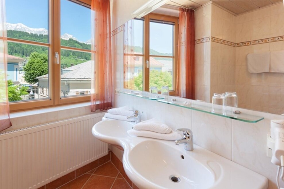 Hotelsuite "Dachsteinblick" 70m²für 4-6 Personen Dusche/WC, Tel./TV, Radio. Alle Zimmer sind mit Handtüchern und Bettwäsche ausgestattet - tägliche Reinigung.