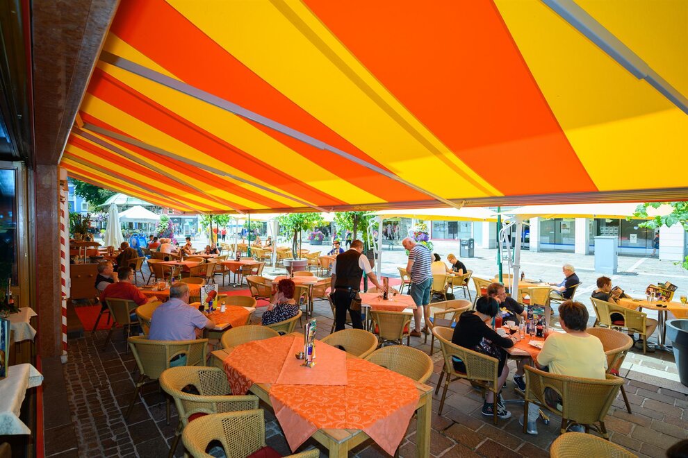 Eine attraktive Sonnenterrasse mitten am autofreien Hauptplatz von Schladming - unsere Konditorei & Restaurant sowie B&B Stadthotel Landgraf - der Treffpunkt in Schladming !