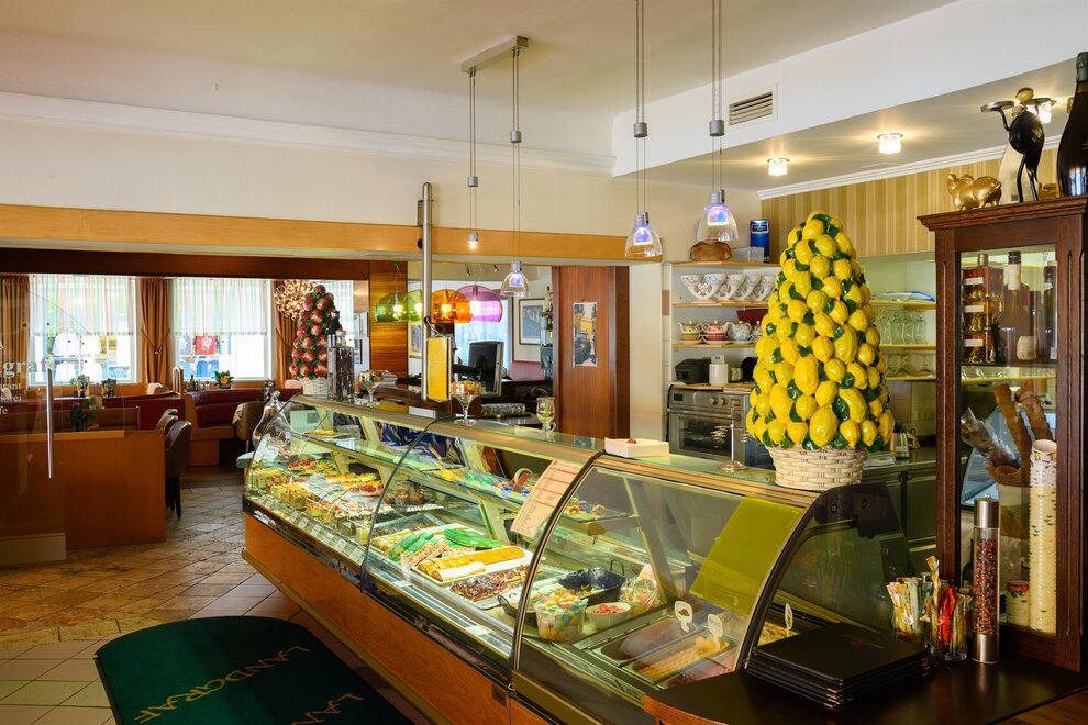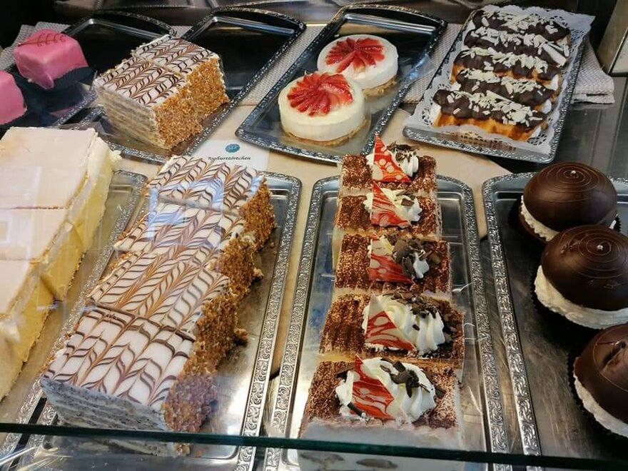 Konditorei - Kaffeespezialitäten - große Auswahl an Feinbäckerei und eigene Eiserzeugung .