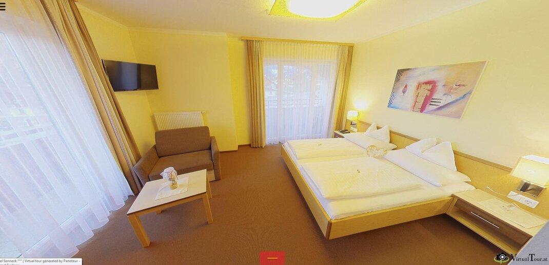 Familienzimmer mit 2 getrennten Schlafzimmern;ausgestattet mit Bad/Dusche, WC, Balkon, Telefon, Kabel-TV, Safe und Haarföhn mit Blick auf Dachstein oder Tauern.