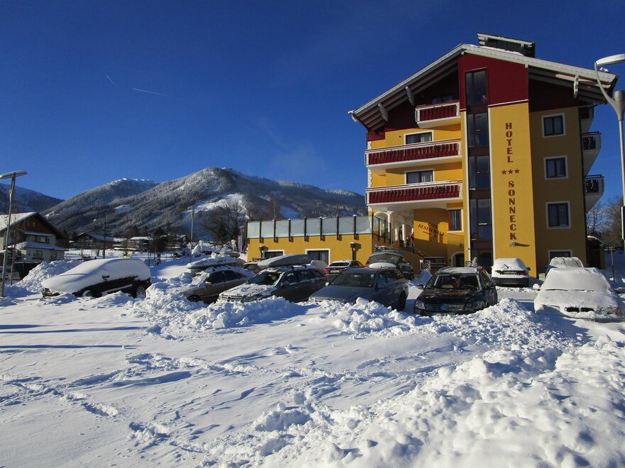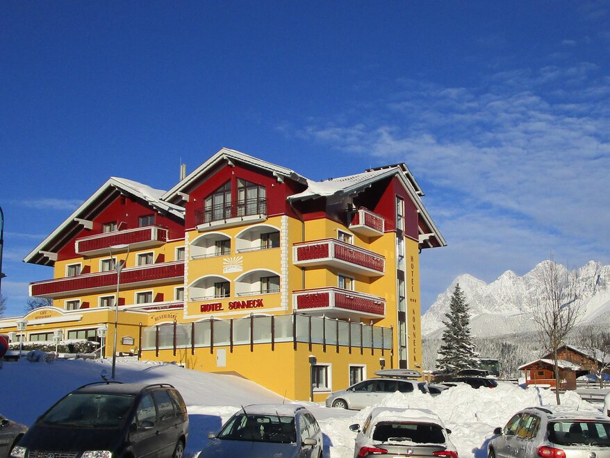 Zentrale, ruhige Lage mit herrlichen Blick zum Dachstein oder zu den Schladminger Tauern. Direkt an Pisten und Liften gelegen. Alle Zimmer sind mit Bad/Dusche, WC, Balkon, Telefon, Safe, Kabel-TV und Haarfön ausgestattet. Unser Wellness-Bereich bietet Sauna, Dampfsauna, Infrarotkabine u. Turbo-Solarium. Für die Kinder: Großer Spielraum. Wir kochen heimische und internationale Spezialitäten. Für Hausgäste bieten wir Frühstücksbuffet und Abends Menüwahl.