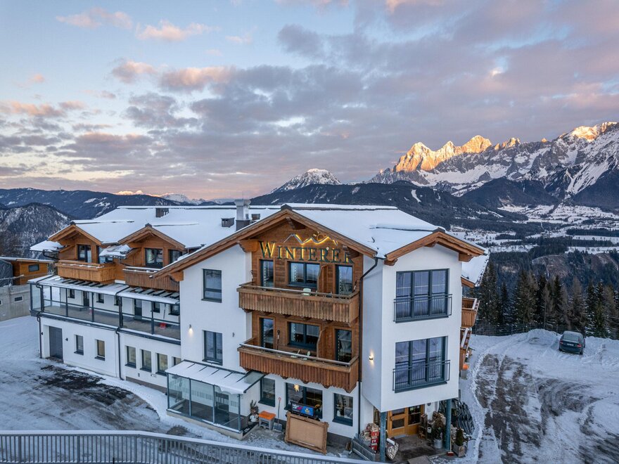 Wir begrüßen Sie im Hotel Winterer. Sie werden von unseren Köchen mit regionalen Schmankerl und internationalen Speisen von früh bis spät verwöhnt. Das richtige Ambiente bietet unsere gemütliche Gaststube, die Sie bei einem Gläschen sicher zum verweilen einlädt. Unser Wellnessbereich bietet neben einer Sauna auch eine Infrarotkabine. Entspannung finden Sie im Ruheraum, mit herrlichem Blick auf das Dachsteinmassiv Unsere Zimmer sind mit Dusche/WC ausgestattet. Auf dem Balkon genießen Sie die herrlich klare Winterluft. Selbstverständlich können Sie im ganzen Gasthof via W-LAN ins Internet einsteigen. Bei uns hat Ihr Auto auch Urlaub. Wir liegen direkt an den Liften Fun-Jet-Talstation und Basic-Jet-Bergstation. Für Ausflüge nach Schladming bietet sich der Linienbus der Planai-Hochwurzen-Bahnen an. Die Haltestelle befindet sich direkt vor unserem Hause. Genießen Sie eine schöne Urlaubswoche im Herzen von Österreich.