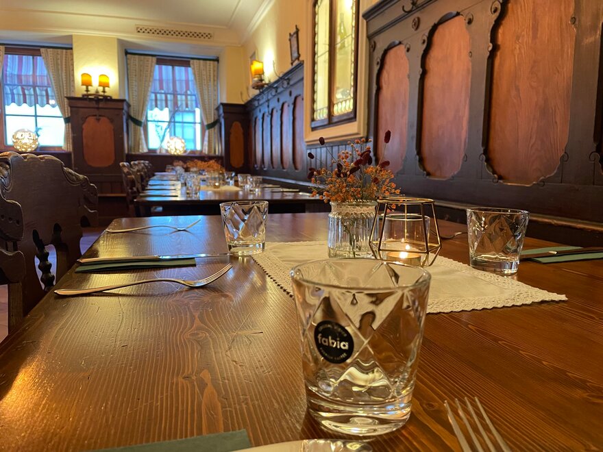 In der urigen Gaststube und im Restaurant, in dem auch Busgruppen Platz finden, werden herzhafte steirische Gerichte serviert.