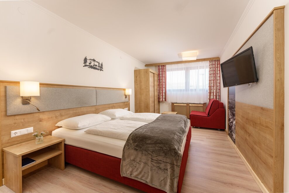 Unsere gemütlichen und geräumigen Doppelzimmer sind der ideale Rückzugsort in Ihrem Urlaub in Schladming. Alle Zimmer sind mit Badewanne oder Dusche und WC ausgestattet und verfügen über einen Flat-TV mit Kabelanschluß und kostenloses WLAN.