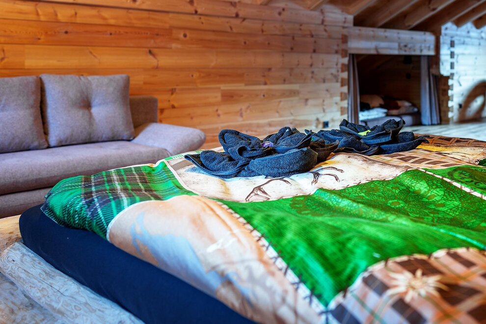 Unser Chalet bietet auf 130 m² Wohnfläche gemütlich Platz für bis zu 8 Personen. Neben 3 Schlafzimmern gibt es einen gemütlichen Wohnbereich mit vollausgestatteter Küche, Essecke, Couch und Holzofen sowie Bad mit Dusche, WC.