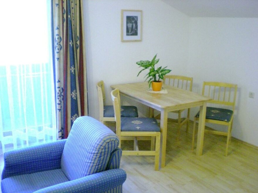 App. A ges. ca. 20 m² . Kochnische mit Geräten, Geschirr und Mikrow. , Bad-Wc , Wohnschlafraum , Sat-TV , große Terasse , ebenerdig gelegen. Max. 2 Pers.