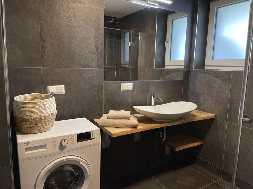 Zu den weiteren Annehmlichkeiten des Apartments gehören ein eigener, inkludierter Garagenstellplatz für Ihr Fahrzeug, zahlreiche kostenlose Parkmöglichkeiten in der Nähe, ein großzügiges Badezimmer, ein separates WC sowie eine integrierte Waschmaschine zur freien Nutzung.