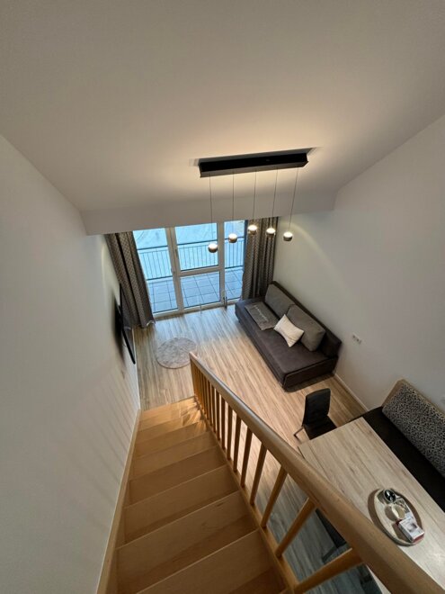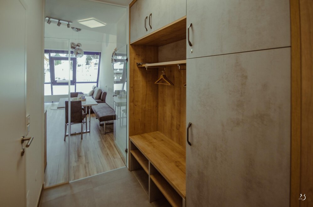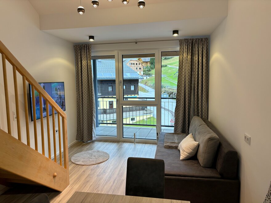 Moderne Ferienwohnung direkt auf der Planneralm. 50 m zur Liftstation. Sehr komfortabel ausgestattet, 42m², Vorraum, Du/WC, Wohnraum m. vollständiger Küche, Essecke und Couch, sowie 2-Bettzimmer im Obergeschoß.