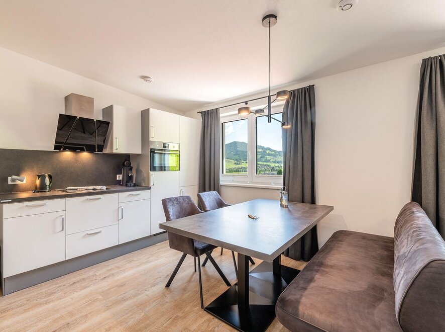 Unser Mountain Love Appartement II bietet Ihnen ebenfalls einen großen Wohn-/Essraum mit voll eingerichteter Küche, ein Badezimmer mit Dusche sowie ein separates WC. Die Ferienwohnung verfügt über zwei getrennte Schlafzimmer mit Doppelbett. Für Ihr Baby oder Kleinkind stellen wir gerne auch hier ein Bettchen kostenlos zur Verfügung!