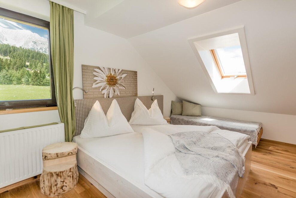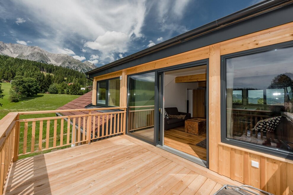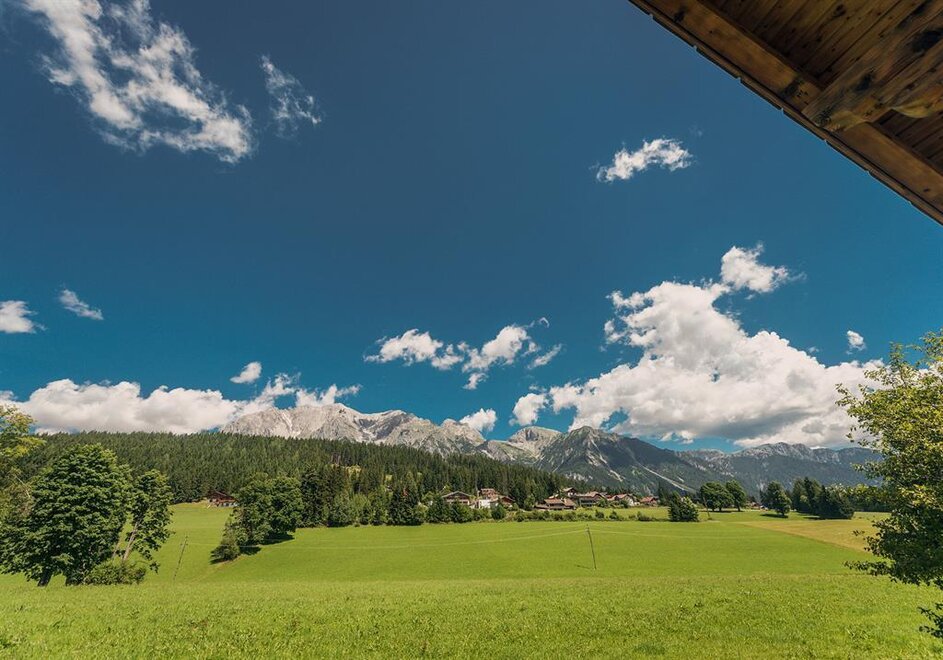 Zum Haus gehört ein großer Garten mit wunderbarer Aussicht, sowohl in die Schladminger Tauern, als auch nördlich ins Dachstein Gebirge. In der Anfahrt gibt es jeweils 2 sichere Parkplätze mit Carport.