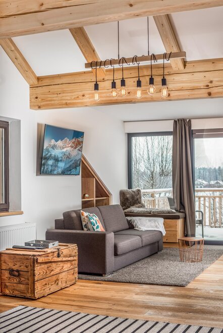Der Stil ergibt sich aus der Geschichte des Hauses, eine gelungene Mischung aus Moderne und steirischem Bauernstand, mit hohen Räumen, großen Fenstern. Einzelne Kästen und Truhen sind aus dem 19. Jahrhundert und prägen den stimmungsvollen Charakter.