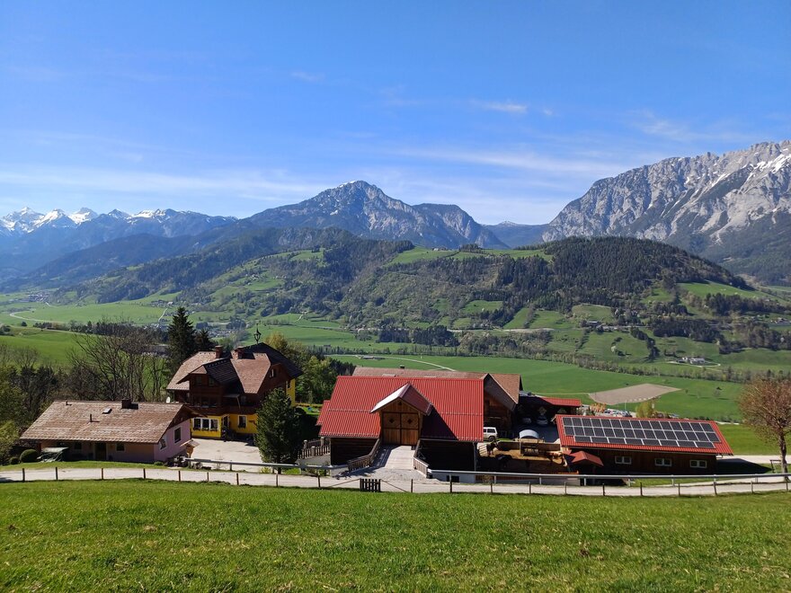 Zwischen Wiesen und Wäldern in naturbelassener Landschaft am Michaelerberg bei Gröbming im Herzen der Urlaubsregion Schladming-Dachstein liegt unser kinderfreundlicher Panoramahof Gupf.