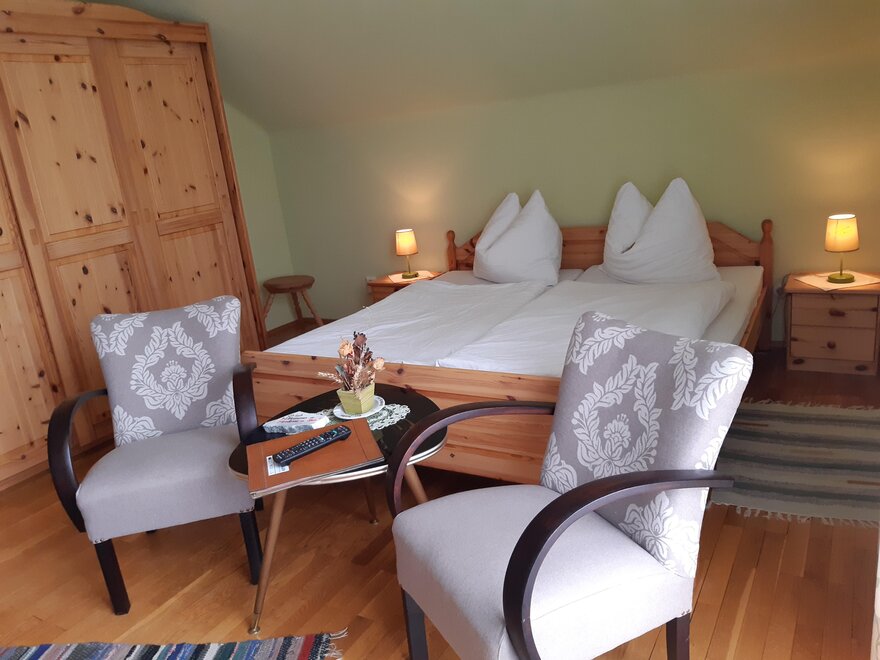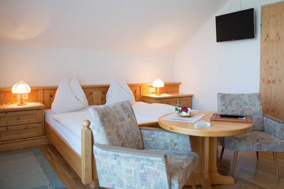 Rustikal eingerichtetes komfortables Doppelzimmer mit schöner Aussicht, TV und WLAN.