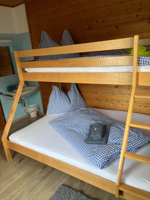 Unsere acht, mit Vollholz ausgestatteten Zimmer verfügen jeweils über ein gemütliches Doppelbett und zum Teil auch über eine Couch, welche als zusätzliche Schlafmöglichkeit genutzt werden kann, einem Badezimmer und separatem WC sowie einem großzügigen Balkon. In den bis zu 20 m² großen Zimmern können 2-5 Personen untergebracht werden und sind somit auch geeignet für Familien, ein Gitterbettchen wird gerne zur Verfügung gestellt.