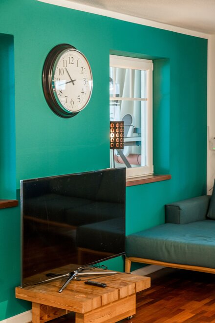 - TV im Wohnzimmer ausschließlich mit Smart TV (Streaming Plattformen) ausgesattet kein SAT-oder Kalbelfernsehen möglich