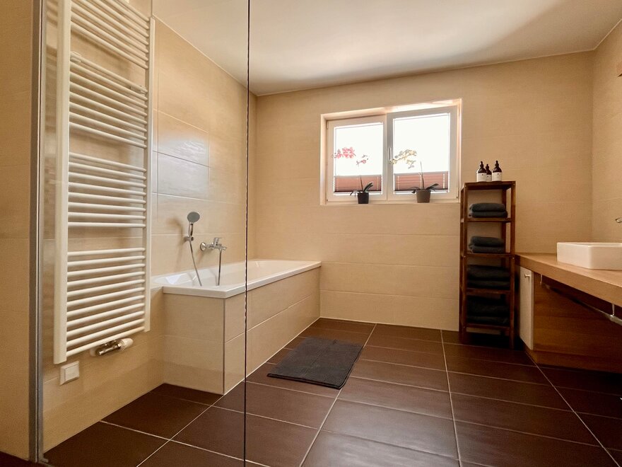 Badezimmer Anzahl: 1, Doppelwaschbecken, Separates WC, Badewanne, Dusche