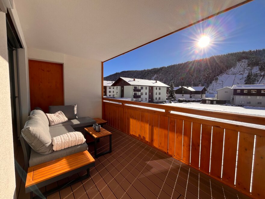 Unser komfortables Erdgeschoss-Apartment Ramsaublick mit Panorama-Terrasse bietet ein Zuhause zum Wohlfühlen in bester Lage.