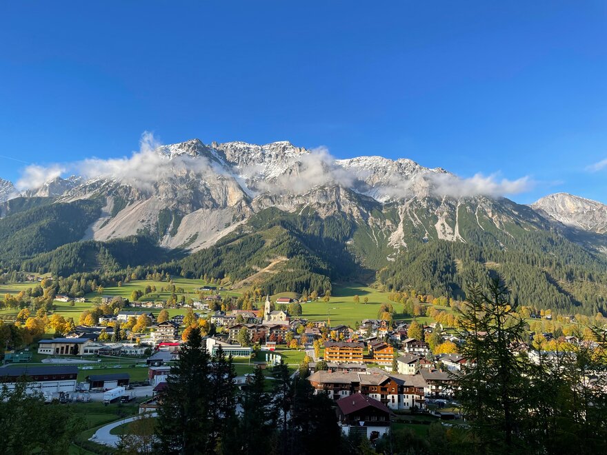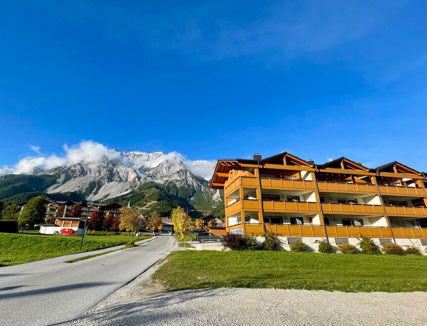 Unser Ramsaublick-Apartment überzeugt durch seine zentrale Lage und ein außergewöhnlich naturverbundenes Ambiente. Das moderne Apartment liegt direkt am Nordisches Trainingszentrum Ramsau am Dachstein und unmittelbar neben der Loipe mit einem beeindruckenden Panoramablick auf das Langlaufzentrum und die Skisprungschanze.