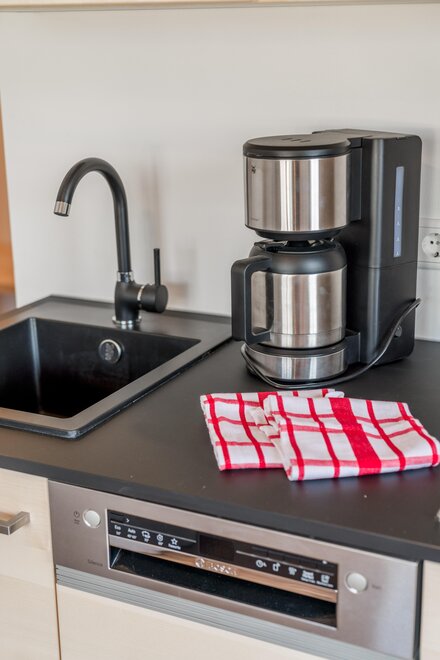 Voll ausgestattete Küche mit E Herd, Backrohr, Kühlschrank mit Gefrierfach, Filterkaffee Maschine von WMF, Wasserkocher für Tee usw.