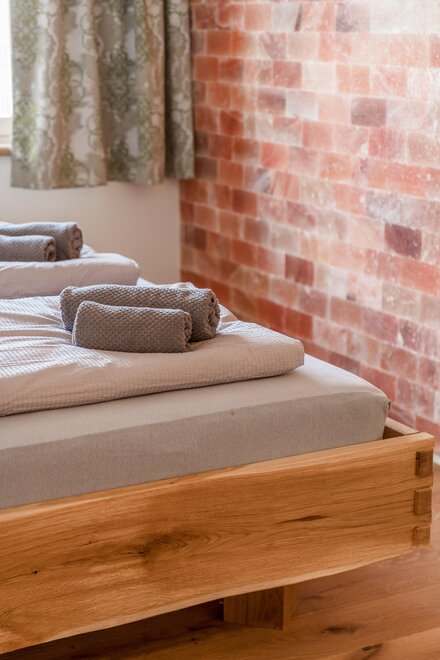 Unser kleines aber feines Appartement besteht aus einem Schlafzimmer mit einem Doppelbett und einer Salzwand (absolut erholsamer Schlaf durch die Salzkristalle),