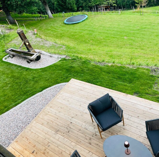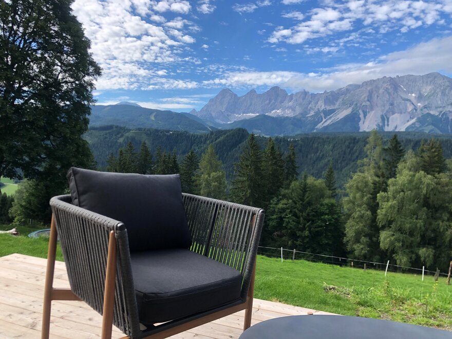 zwei große Terassen mit Bergblick laden zum Verweilen ein