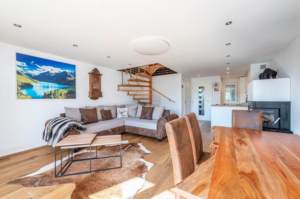 Das StoderGarden Apartment besticht durch seinen ländlich-eleganten Stil, der Landhaus- und Western-Elemente mit modernem Alpenflair kombiniert. Der offene Wohn- und Essbereich ist geschmackvoll eingerichtet und die voll ausgestattete Küche lädt zu entspannten Kochabenden ein.