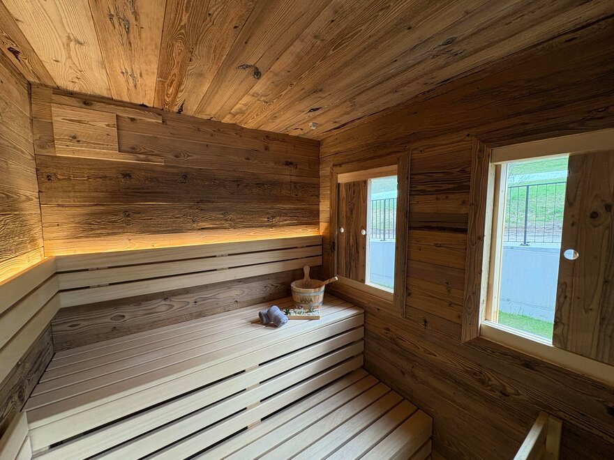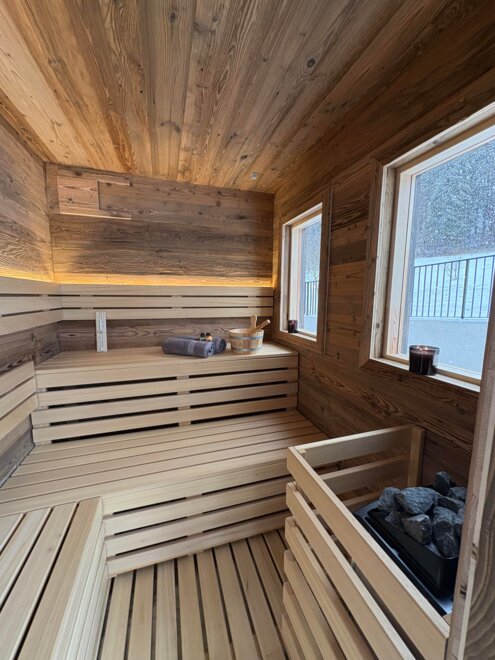 a fireplace for cozy evenings as well as a private outdoor sauna on the terrace.