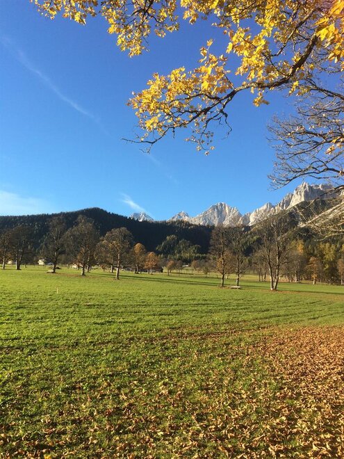 A warm welcome to the holiday paradise Ramsau am Dachstein, at the 3*** Pension Alpenglühn! We are looking forward to making your valuable holidays unforgettable and as pleasant as possible. Our comfortable Pension with family-friendly atmosphere is situated in beautifully quiet and sunny location with great views to the Dachstein mountains, ideal for your summer as well as winter activities. In winter, the cross-country trails and the winter walking paths are directly passing by our house. For all those who can’t get enough, or for romantics, there is the night cross-country trail in the Ramsau Ort stadium, lit up every evening until 21.00 h and reachable within 5 minutes. The bus stop, from where you get to Kali’s Adventure Ski Runs and to the ski amadé area with its interlinked 4 mountains Hauser Kaibling, Planai, Hochwurzen, and Reiteralm, is only 2 - 3 minutes by foot away. The ski lift “Bergkristall” and the local ski school are very close and can be reached by foot. Your ski gear can be safely stored in our ski storage room, and there is an extra ski-service room available. At the Pension Alpenglühn, there are only family members looking after the well-being of the guests. Furthermore, the newly renovated Pension Alpenglühn has nine comfortable double rooms and three spacious family rooms with separate bedrooms. You stay in friendly, bright rooms decorated with care, all of which have a balcony, a private bathroom with shower/WC, and Sat TV. After an active and sportive day out, you are welcome to relax on your sunny balcony with breathtaking views to the Dachstein mountains. WLAN is available free of charge in the house. In the morning, we prepare a rich breakfast for you, with jams, different kinds of mueslis, crispy home-baked bread, homemade cakes, and fresh, regional products. In winter as well as in summer, you choose from a varied 3-course set menu. In summer, the Schladming Dachstein region turns into Styria’s premium hiking area with fascinating panoramas and varied possibilities for excursions, as well as endless leisure offers including relaxing, exercising, recharging your batteries, making you forget about the day-to-day life for a while. Winter tourism does not have to be noisy - pleasurable carving turns on the ski slopes, classic parallel cross-country skiing and rhythmic skating along the groomed trails, easy-going walking along snowy winter walking paths in fresh, clear air - the idyllic sunny plateau of Ramsau is perfect and enchants holidaymakers over and over again. We look forward to your stay at our Pension Alpenglühn in Ramsau am Dachstein! Yours, Stocker family