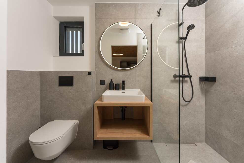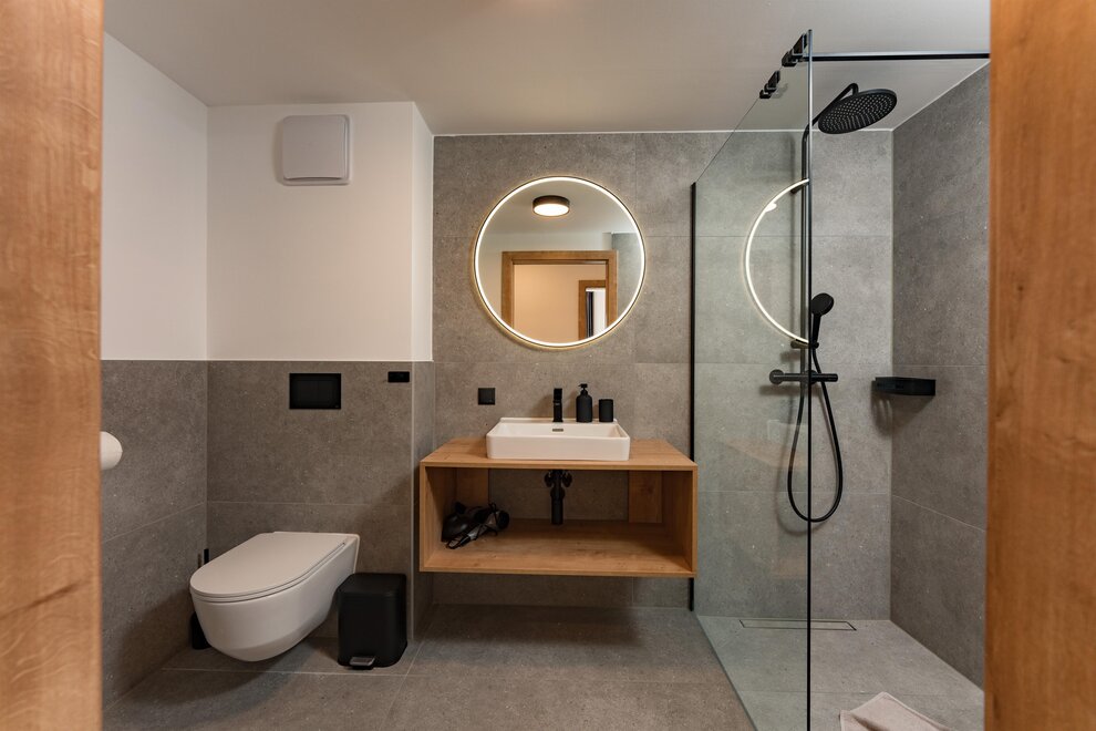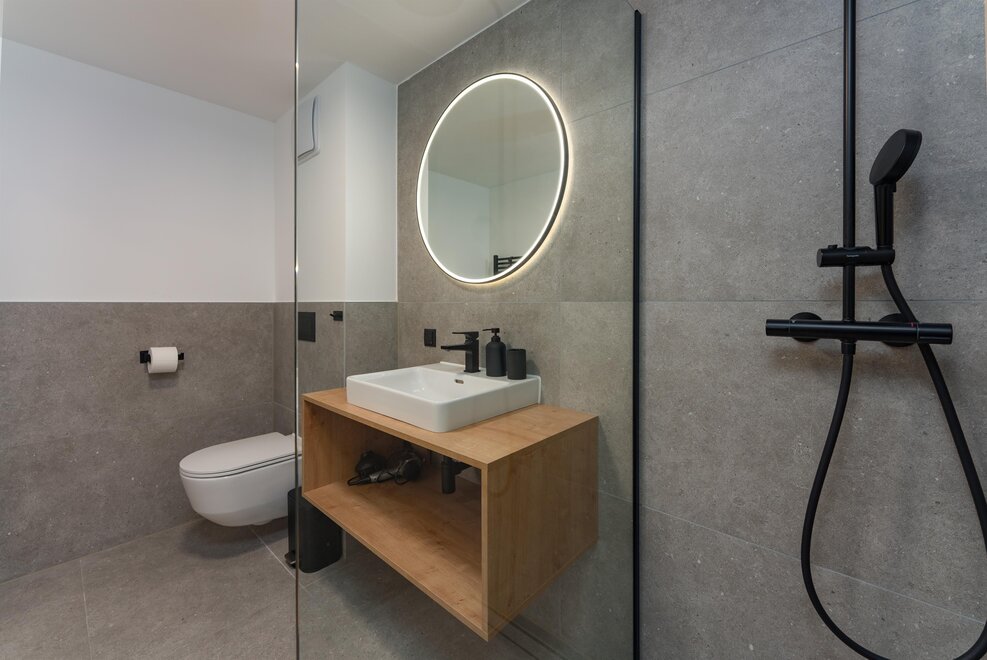 - Application of water-saving showers, sinks (intelligent showers, shower head with low flow rate...)