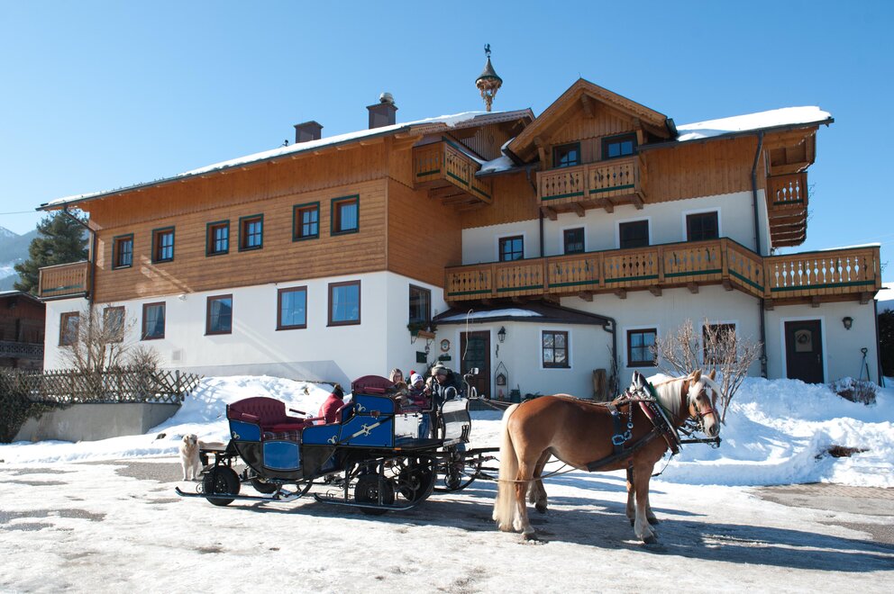 In winter the ski bus stop is right in front of the front door. In just a few minutes you can reach the kilometer-long pistes of the world-famous 4-mountain ski area by bus. Of course, there are numerous snowshoeing and winter hikes, as well as the night-lit toboggan run from the Hochwurzen, which can be driven at any time of the day, and with a kilometer-long cross-country ski network in the Obertal and Untertal also off the ski slope numerous possibilities to make the winter holiday unforgettable. Especially romantic is a sleigh ride with the in-house horses. Whether it is a bright sunshine, snow drift or even a bright moonlight ride in the evening, this is an unforgettable experience in your holiday at the Angererhof.