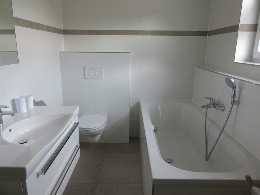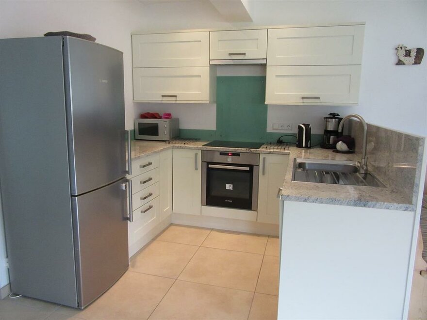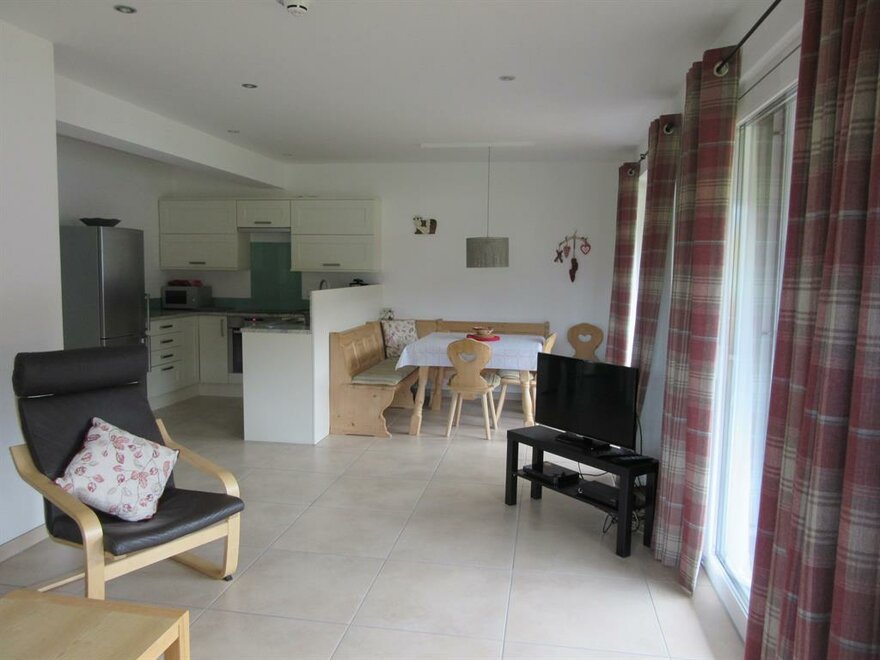 Apartment with 2 bedrooms, 1 bathroom with toilet, 1 separate WC. Livingroom with large sofa (sofabed) and armchairs, also kitchen area and Austrian corner bench for dining, Entrance hall.