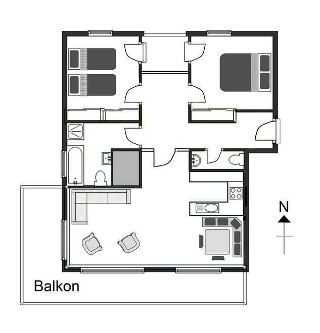 In the apartment you will find 2 bedrooms each for 2 persons, 1 living room (with 1 sofa for 2 persons), a fully equipped kitchen and traditional Austrian dining table. An entrance hall for shoes and coats, 1 bathroom with both a bath and a shower, WC and sink, plus an extra toilet. The appartment is non smoking.
