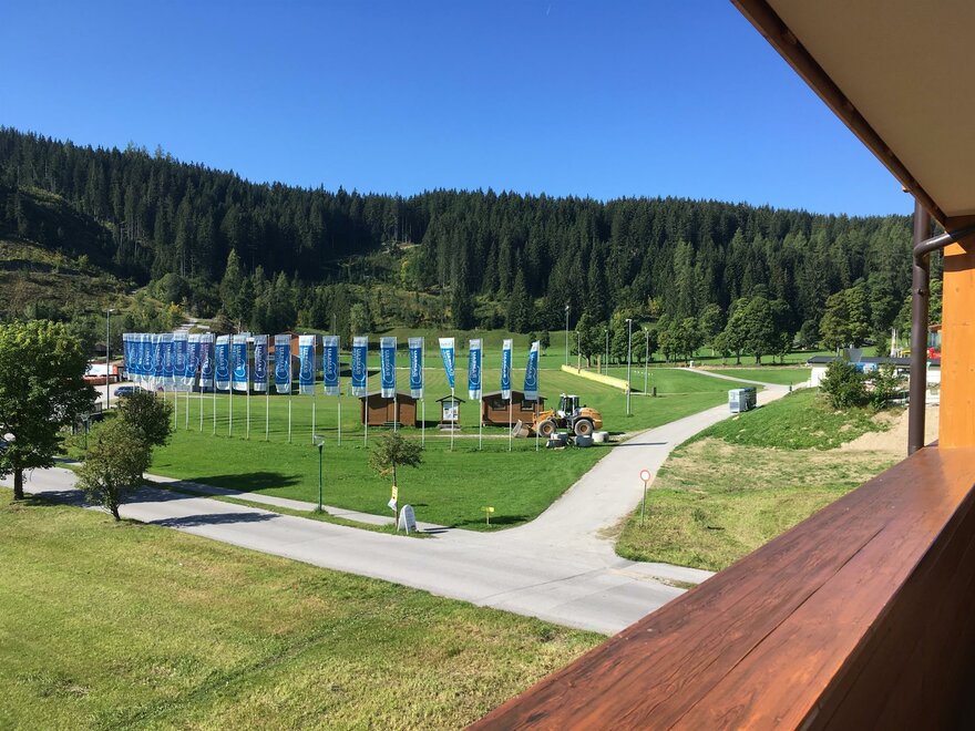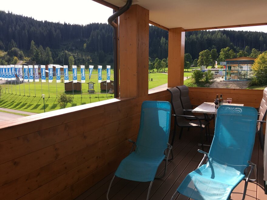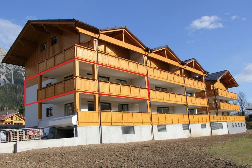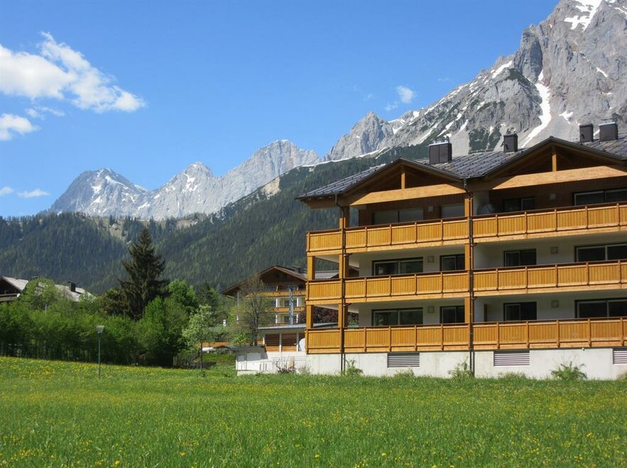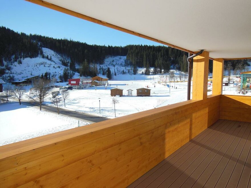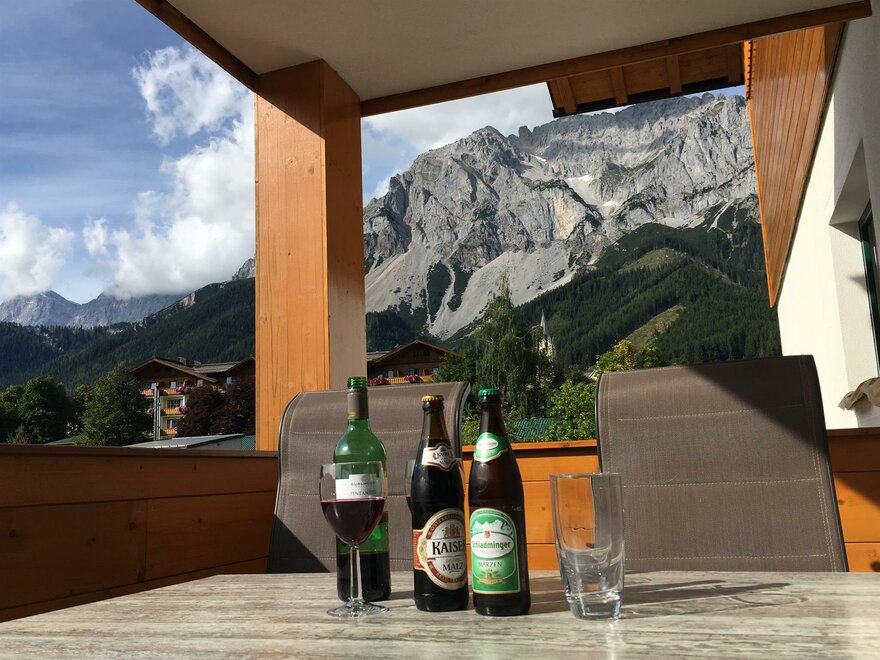 Apartment Coley has a very large wraparound balcony facing south and west, with views of the ski jump on the Kulmberg, the cross-country stadium and the Dachstein mountains.