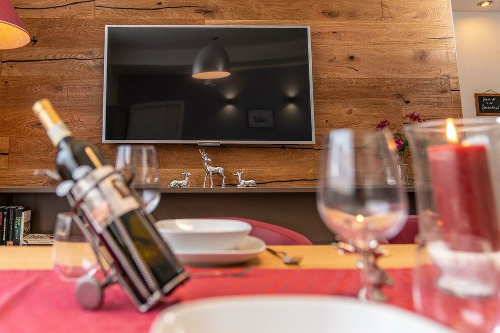 Our fully equipped non-smoking apartment – with private access – has 2 separate bedrooms, a living-sleeping area and a fully equipped kitchen. Bathroom with washing machine, free W-Lan, 3 flat-TV – comfort as usual at home. In the infrared sauna you can relax after varied hikes and ski runs on our local mountains. In summer you can enjoy our garden with a view of the leisure lake and the mountains of the Schladming Tauern. The nearest supermarket (Spar-Markt) is located at the entrance to the village of Aich, approx. 1 km from the apartment. Especially recommended are our restaurants in the village. Experience culinary delights and local delicacies, down-to-earth cuisine and a pizzeria with an Italian flair. And a good glass to eat can also be enjoyed, because all restaurants are within walking distance from our apartment.