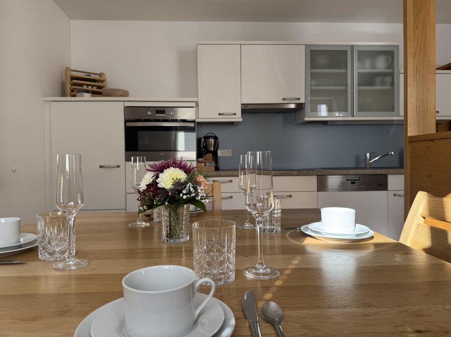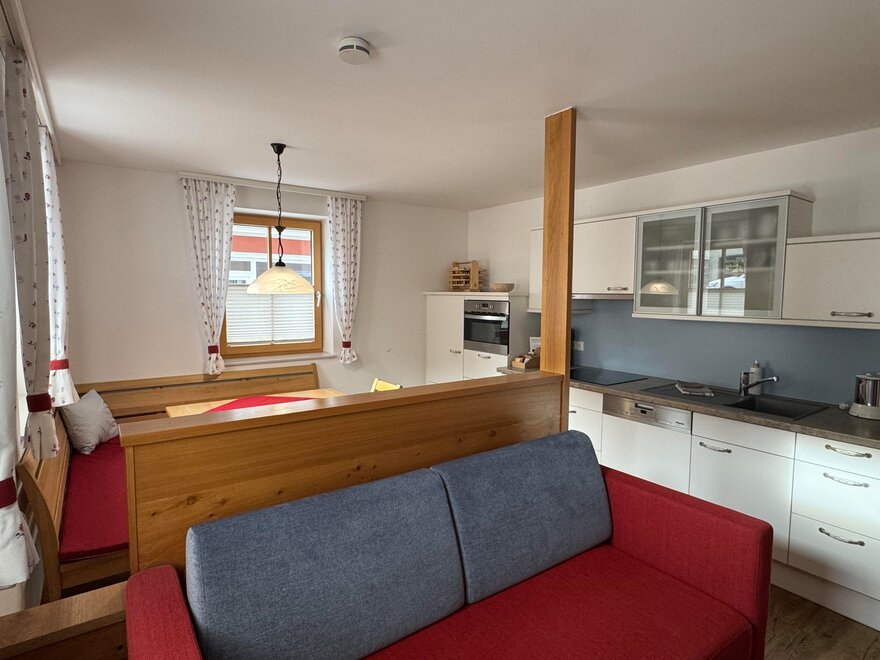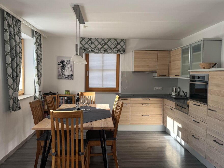 Our two apartments constitute the perfect base for a relaxed car-free winter and summer vacation. Each apartment has its own entrance with a boot dryer and ski racks. They also hold an infrared cabin, WIFI, TV, 2 bedrooms, bathroom and toilet, eat-in kitchen and a delicious bread service in the morning, Sommercard-Your free admission to over 100 attractions Three carport spaces in total, a completely fenced yard, the gateway can be closed. Furthermore a sandbox, a playground including toys and a seating area. Bright and cozy south-facing combined kitchen and living room, fully equipped with a dishwasher, a coffee machine, an all-in-one microwave, grill, and oven and other essentials.