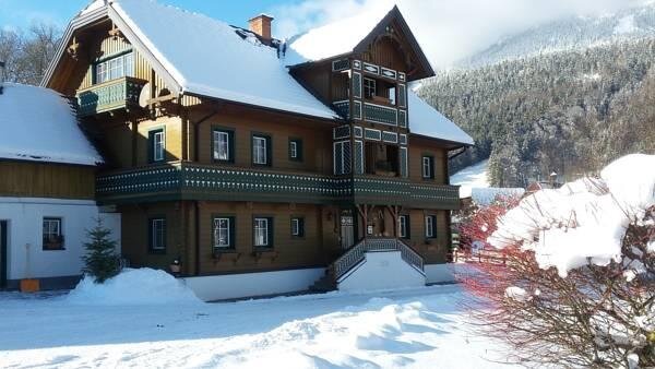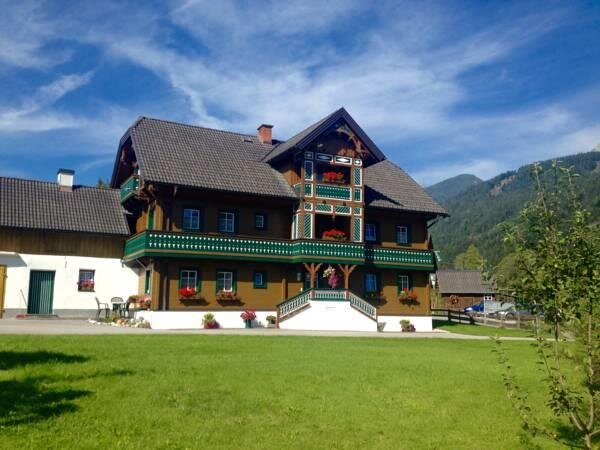 Crossing Hauser Kaibling cable car, app. 1 km until Weißenbach, 3. street turn left, "brown house with green-white balcony"