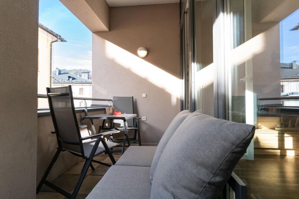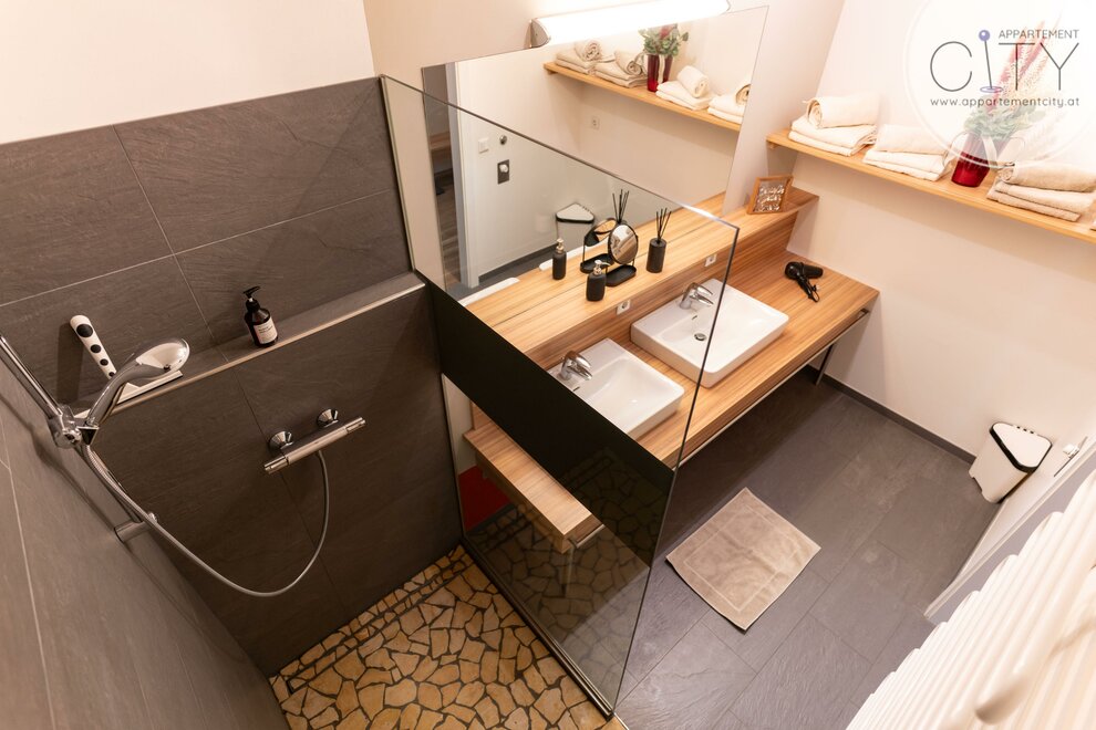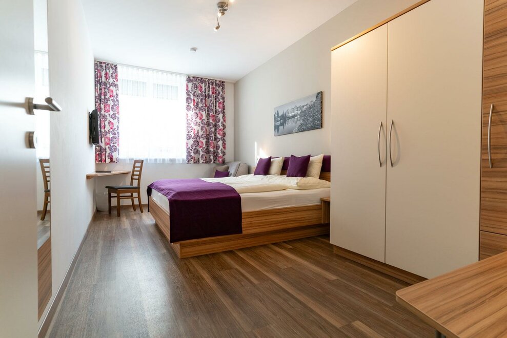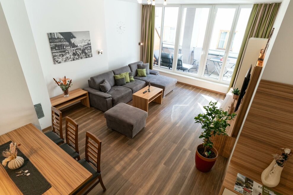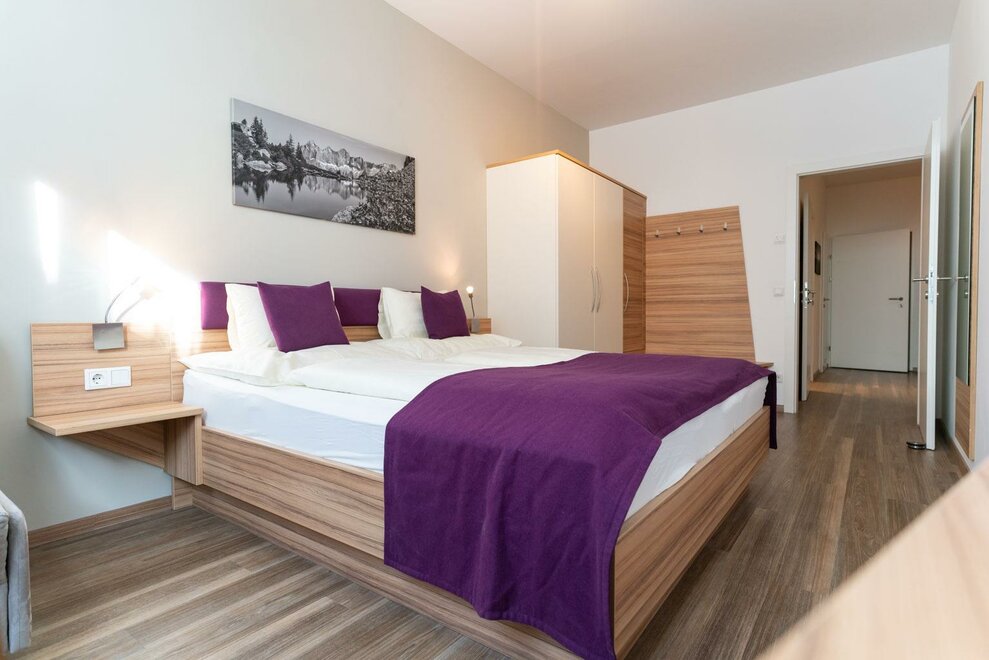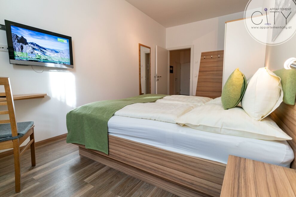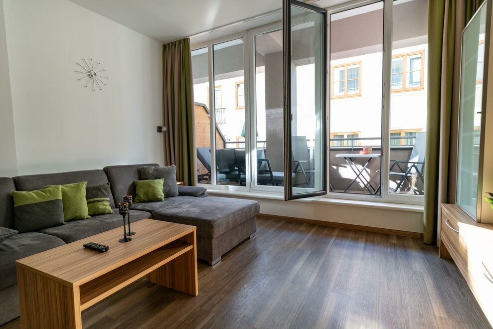The non-smoking apartment City is located on the 1st floor (elevator access) The apartment consists of 2 separate bedrooms with double beds and a couch, 1 living room with a double sofa bed and a kitchenette, toilet and bathroom separate & balcony!