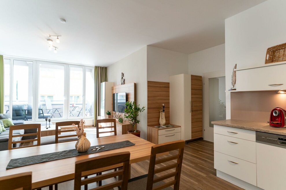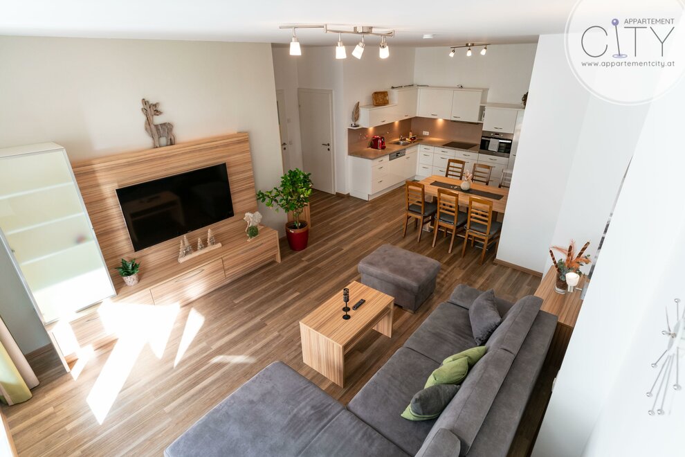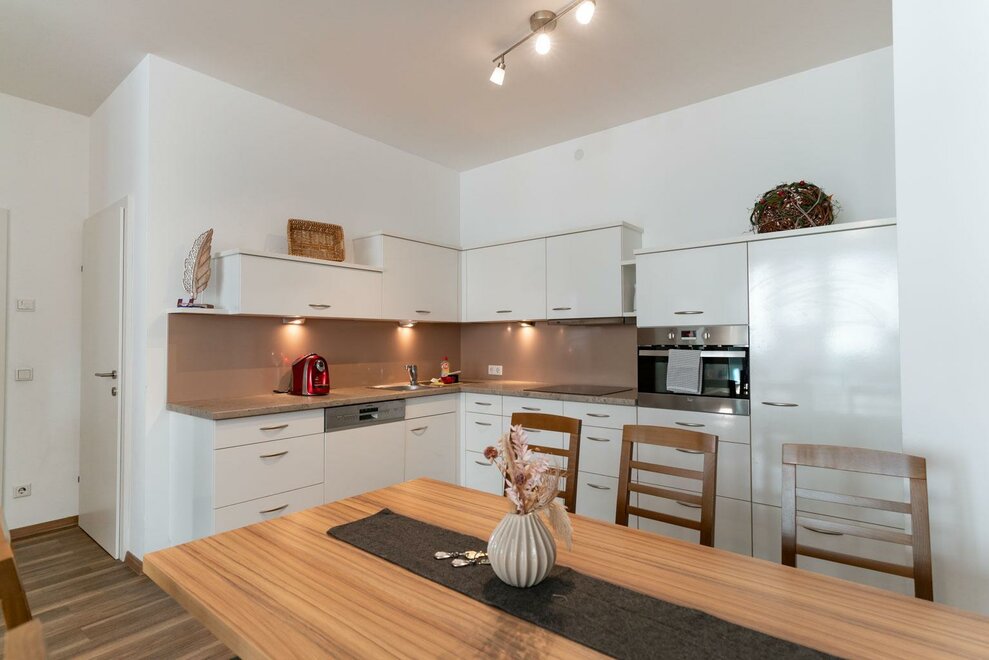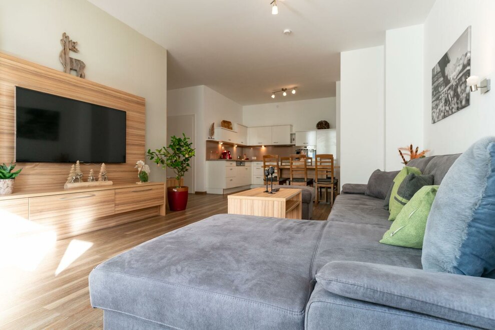 open plan kitchen/living room, dishes available, good as new room/apt., hairdryer, coffeemaker, heater, island kitchen, kettle, kitchenette, use of washmachine, balcony furniture, no pets allowed, no carpet, Größe m²: 93, oven, store room, TV, towels available, kitchen utensils, furniture suite, freezer compartment, anteroom, separate bedroom/s: 2, combination microwave, kitchen and table linen, bed linen available, toaster, refrigerator, balcony, WiFi, dish sink, cable TV, electric stove, dishwasher, closet, non-smoking room/apt.