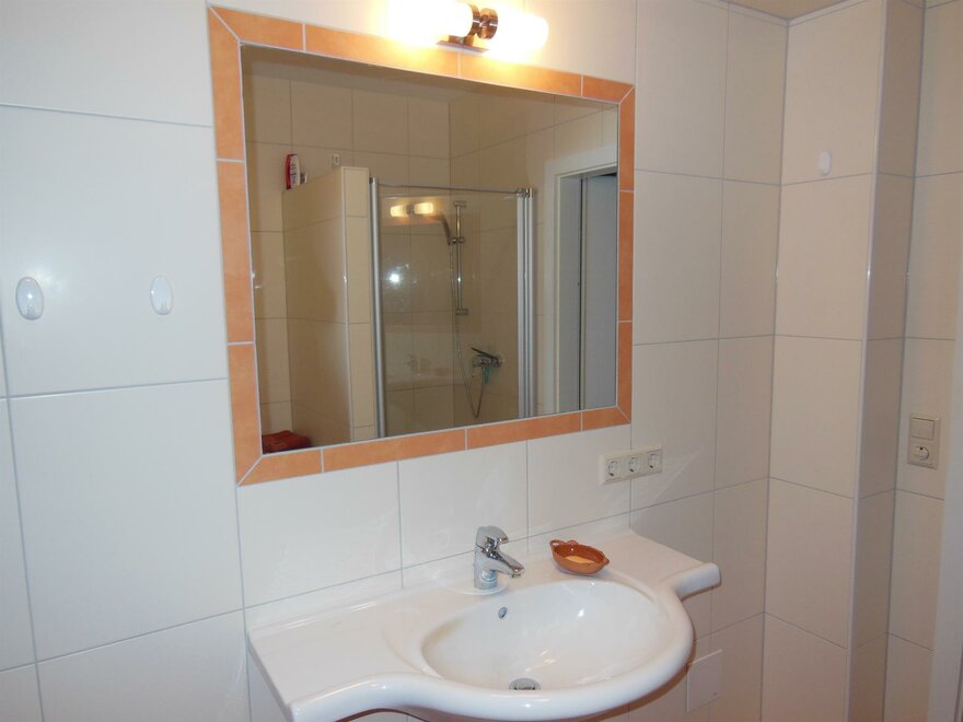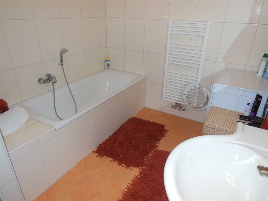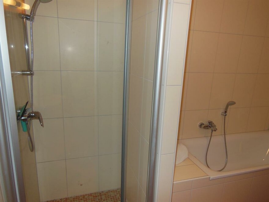 - 1 bathroom with shower and bath, washingmachine