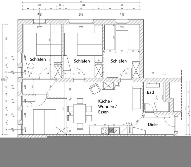 Size 90 m² Occupancy 1 - 8 adults , 0 - 7 children Rooms 5 Bedrooms 4 Room details