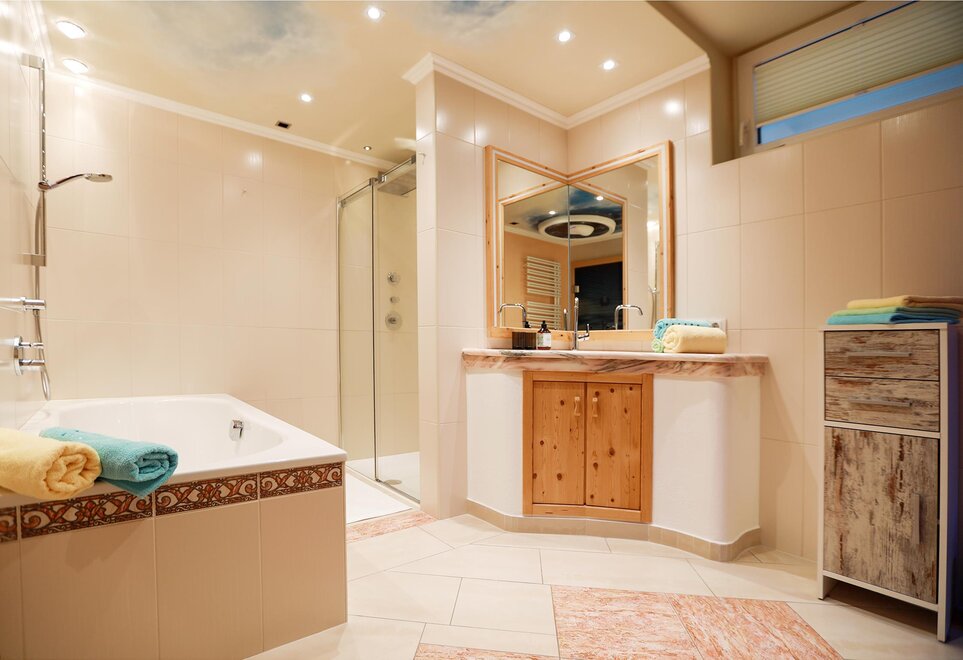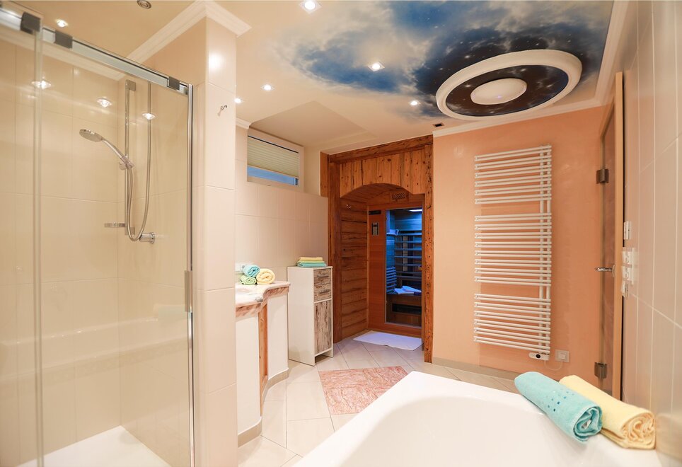 - cheerful bathroom with rain shower, bathtub, infrared cabin, music, seperate toilet...
