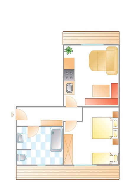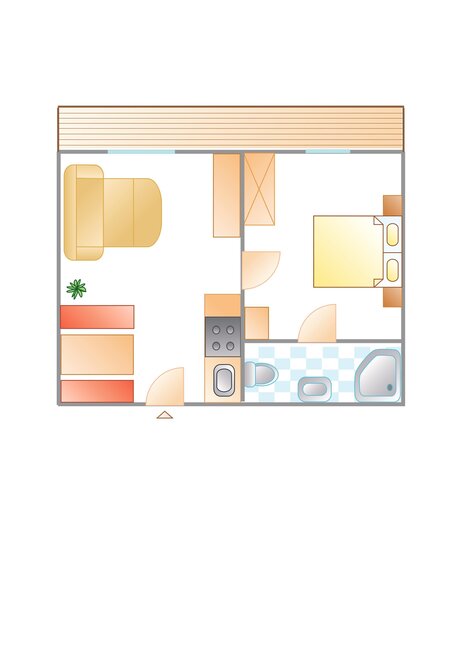 Size 35 m² Occupancy 1 - 3 adults , 0 - 3 children Rooms 2 Bedrooms 1 Room details