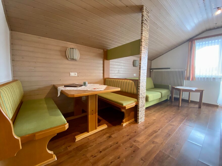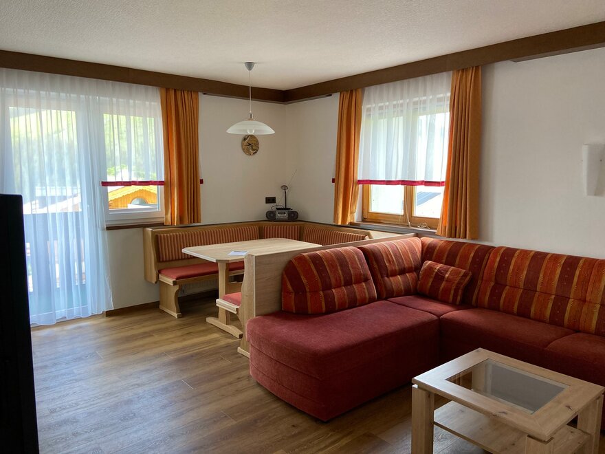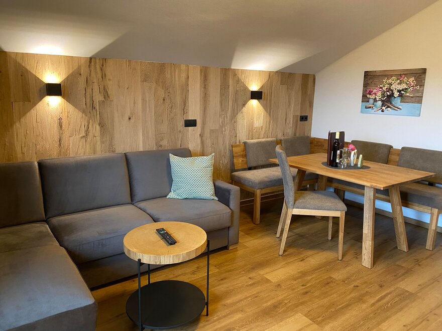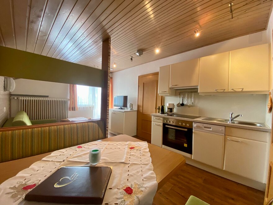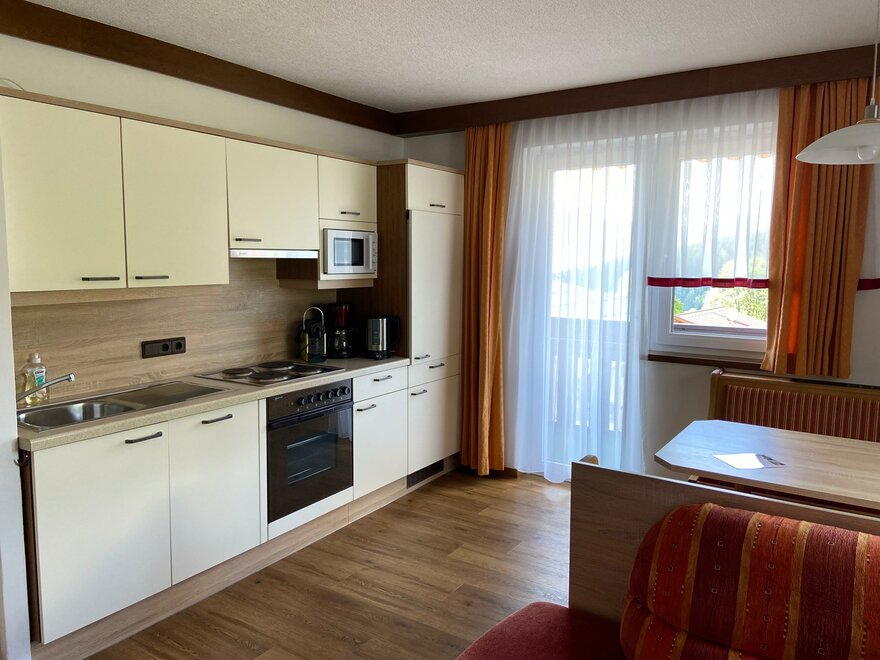 Our aprtement "Tauern" (35m²) appointed with a bedroom with a full-sized bed, livingroom with extendible Couch, bathroom with shower and WC, completly arranged kitchenet with fridge, oven, microwave, dish washer, TV, phone and south side balkony.