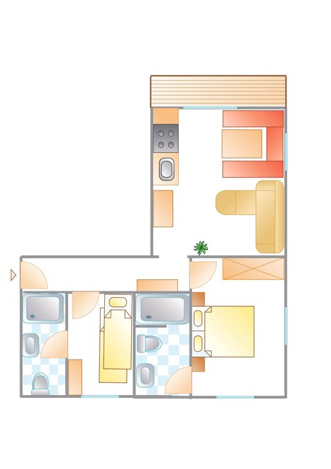 Size 55 m² Occupancy 2 - 4 adults , 0 - 3 children Rooms 3 Bedrooms 2 Room details