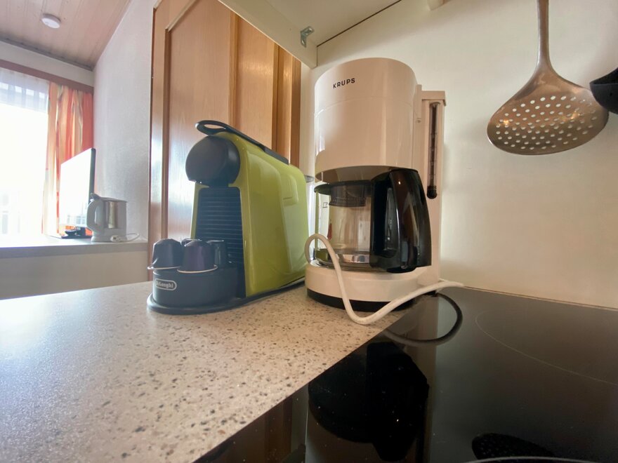 The Apartment (50m²) is composed of a bed room, living room with an extendible Couch, shower and WC, anterroom, completly arranged kitchenette, oven, microwave, dish washer, phone, fridge, TV, south- and North side balcony.