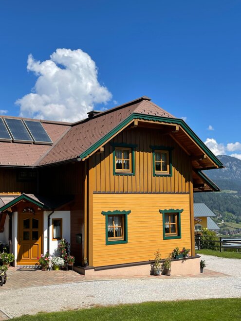 Since the beginning of the 19th century, the Landhäusl has been part of the Schattenschupferhof, my family's 800-year-old mountain farm. I run the farm and raise calves for a dairy farm. As an organic farmer, I am aware of how much goes into the production of our food. To make this clear to other people as well, I founded the association Land schafft Leben, with which I inform about Austrian food production. By the way, if you want to enjoy high-quality food from the region during your holiday, you've come to the right place: In the centre of Schladming I run the Bauernladen Heimatgold, where you can find fine delicacies from local farmers. I am looking forward to your visit and wish you a delicious time in the Landhäusl.