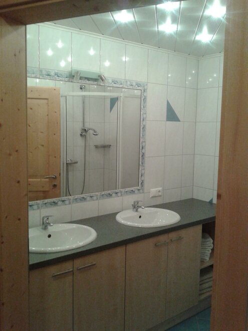 Our spacious apartment is located on the second floor of the house. You occupy the house alone. With two separate bedrooms it can accommodate up to 5 people. The fully equipped kitchen with a sitting area and cable TV invites you to spend cozy evenings. In the bathroom there is a double sink and a shower, WC separate. Special fine are relaxing evenings on the sun terrace with views of the Dachstein massif. Free W-Lan in the entire house is a matter of course for us.